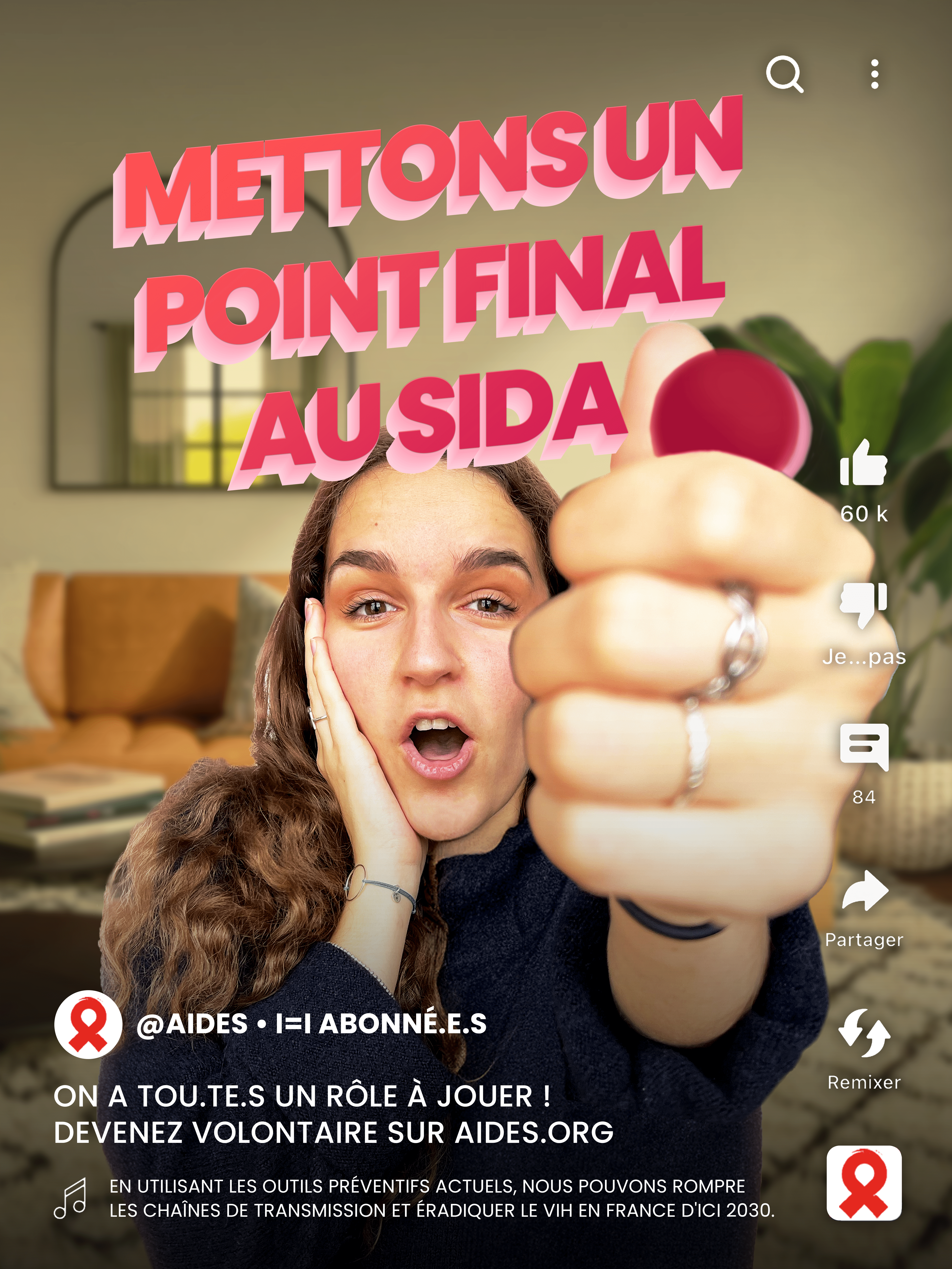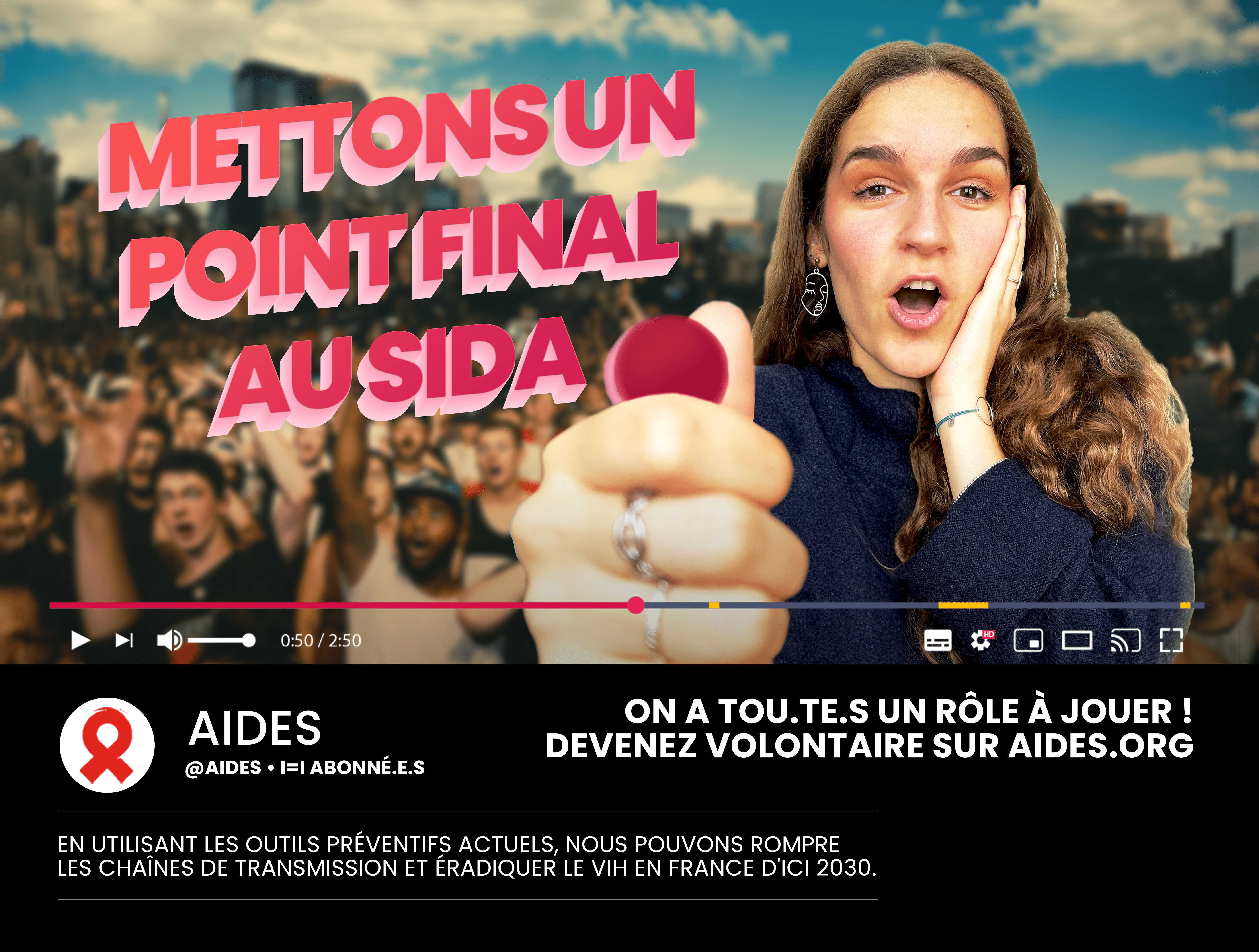 En utilisant les outils préventifs actuels, on peut éradiquer le VIH/sida en France d’ici 2030. La jeunesse joue donc un rôle clé dans cette lutte, en étant LA génération qui mettra le point final à l’épidémie. Nous avons axée cette campagne sur un système graphique mettant en scène ce point final sur différents médias, en nous inspirant des codes très reconnaissables de la génération Youtube.